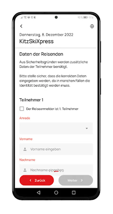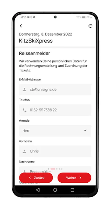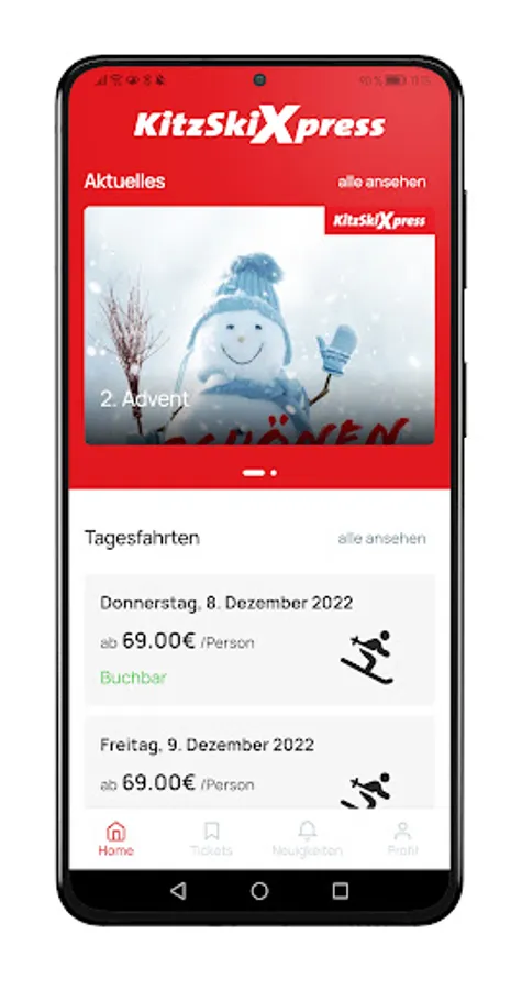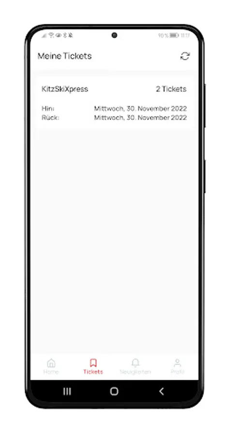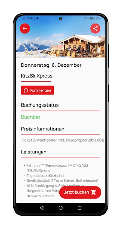 The KitzskiXpress app with all information about the trip to Kitzbuehl.