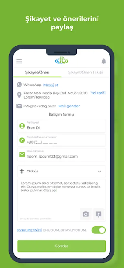 Through the mobile application offered by Tekirdağ Metropolitan Municipality to its citizens and visitors; users,