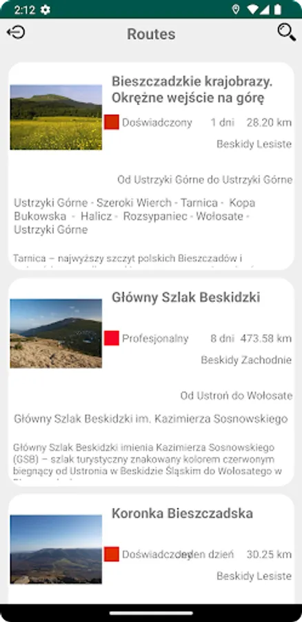 With this app, you can choose a hiking route and follow it from start to finish, using the app as a navigator. You can always use this app as a guide during your hike. It includes information about the weather, surrounding towns, transport, etc.