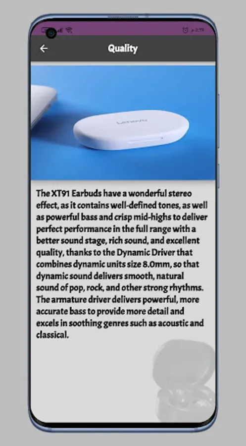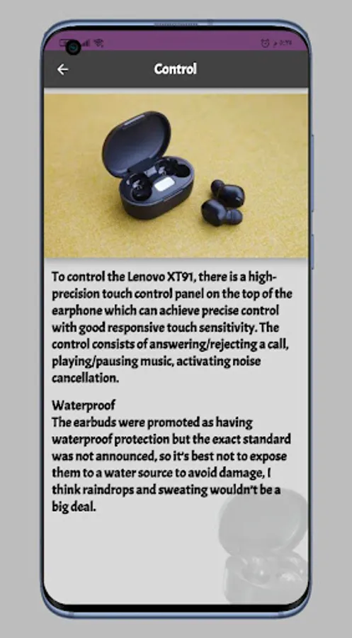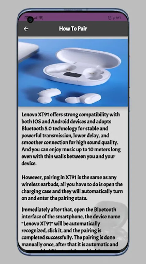 Through the application, discover more information about how to operate Lenovo XT91 Earbuds easily and how to establish a connection with Lenovo XT91 Earbuds with your phone, and you can now read the following description to learn about all the specifications of Lenovo XT91 Earbuds