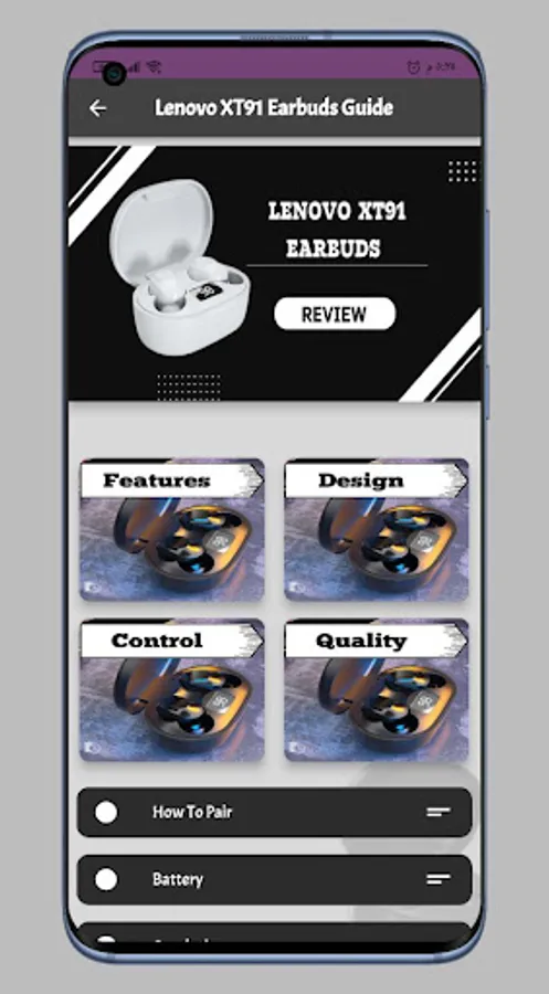 Explanation about Lenovo XT91 Earbuds - Guide watch app