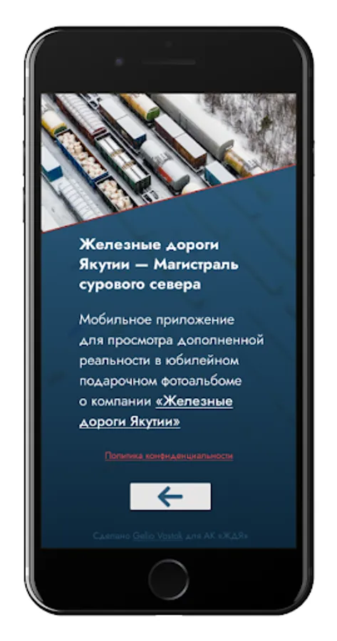 allows you to visualize the photographs used in the book “Railways of Yakutia. 25 years on the road ”, using augmented reality (AR) technology. The application was made by Gelio Vostok for JSC "AK" Yakutia Railways ".