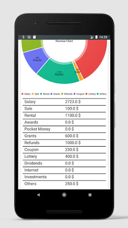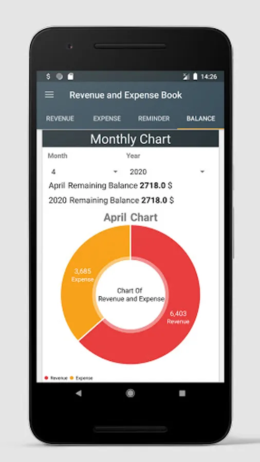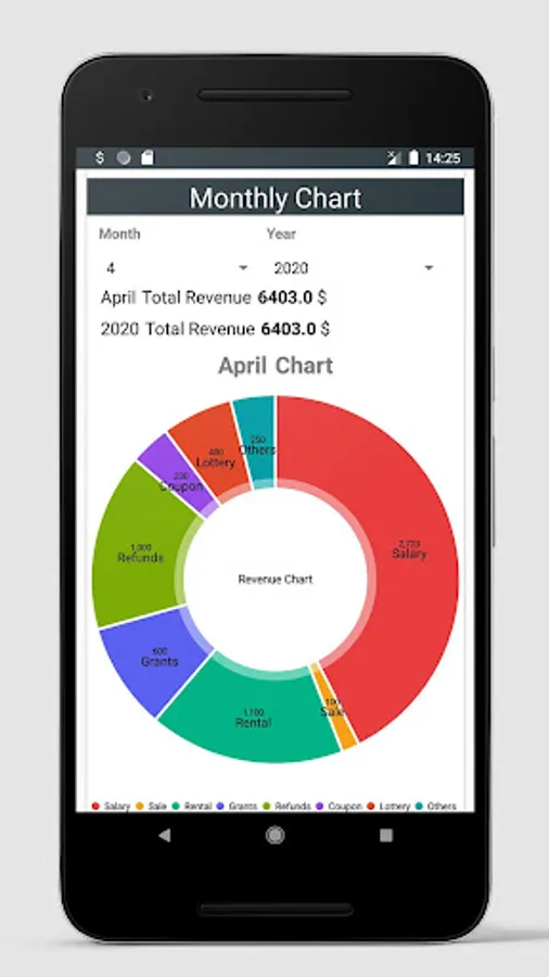 - With the Expense Manager, you can also track your data by pie charts according to months and years.