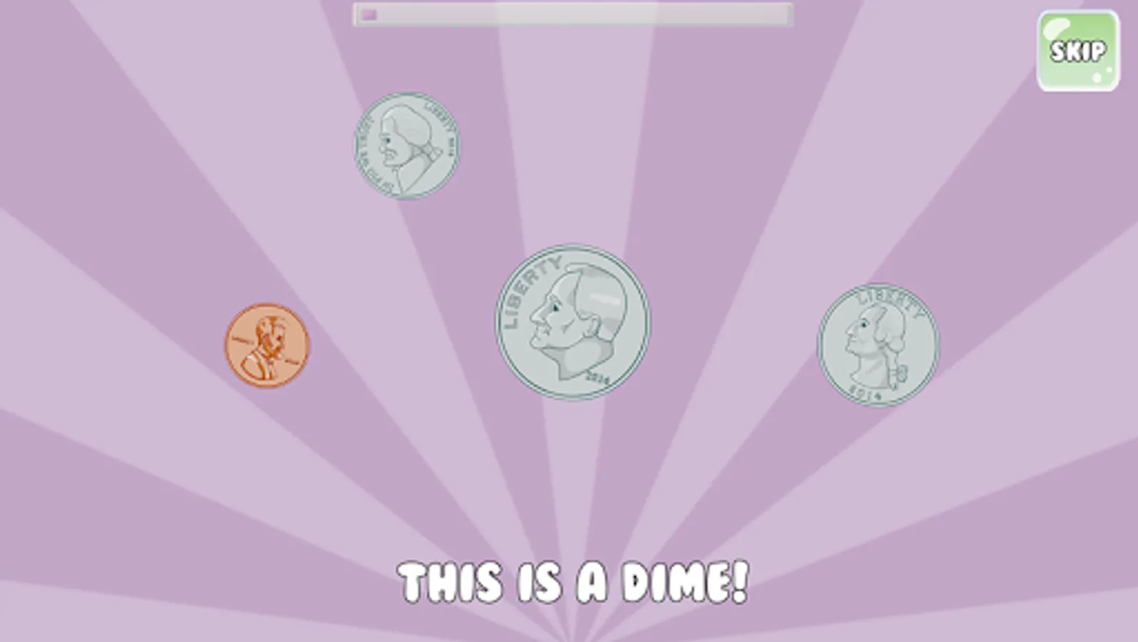 * learn the visually appearance of pennies, nickels, dimes, and quarters.