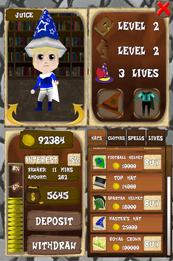 Dragons are stealing magic from the world. Help the Master Wizard prevent the dragons from stealing magic from the world. To do this, you must climb ancient towers and free the magic coins that are being hoarded in treasure chests by the dragons. But be careful, you may end up finding a dragon on top of the tower... As a wizard in training, you can learn and use spells and potions to aid you in your epic quest.