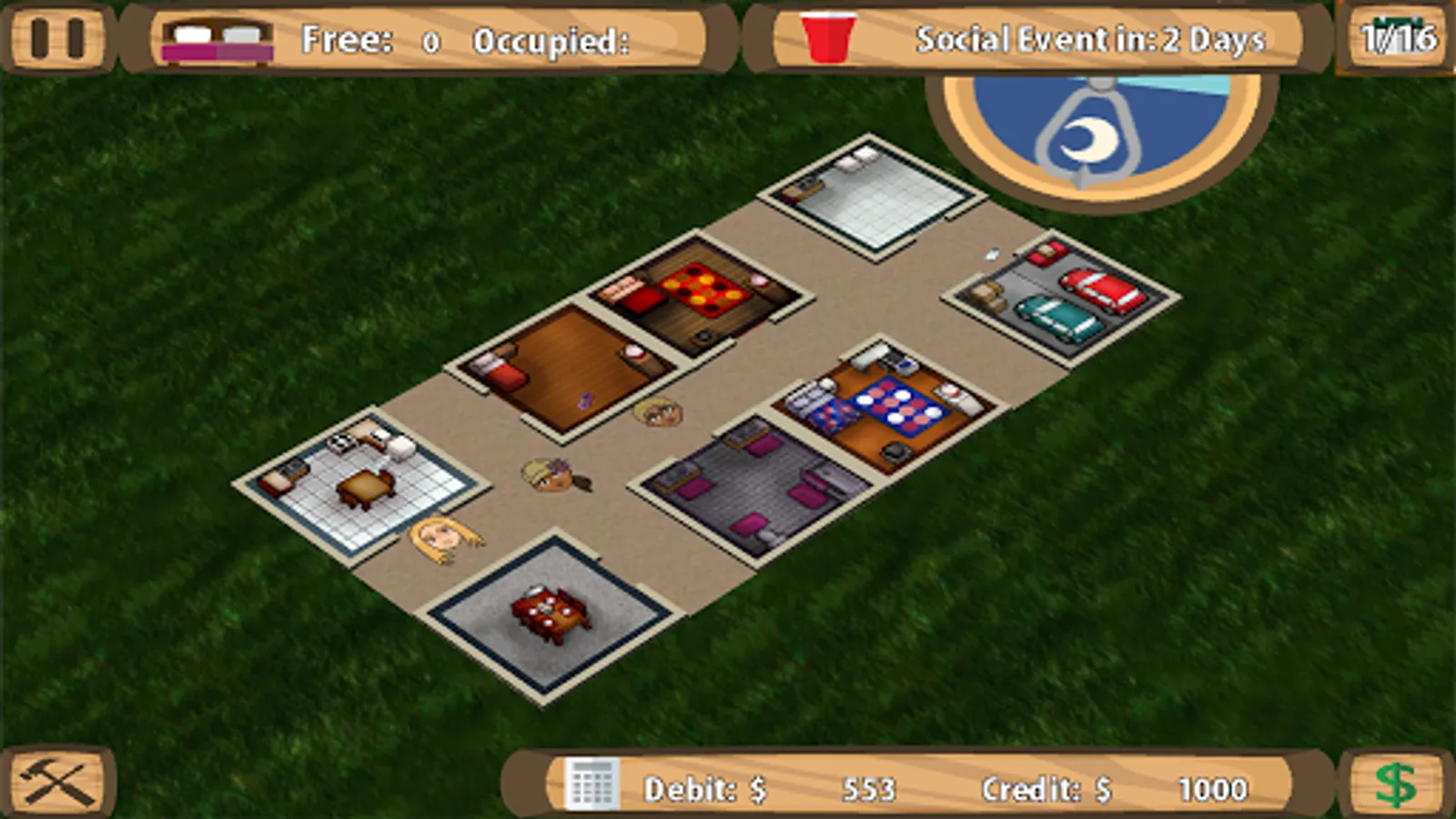 In Spartan Villa your goal is to create the best college house on campus. Design the house, build the rooms, throw parties and social events, all to attract the best tenants. Be a generous landlord and shower your tenants with high-end rooms and lavish parties or create the next student ghetto. The choice is up to you! But be careful, if you do not manage your finances successfully, you may just lose your house!
