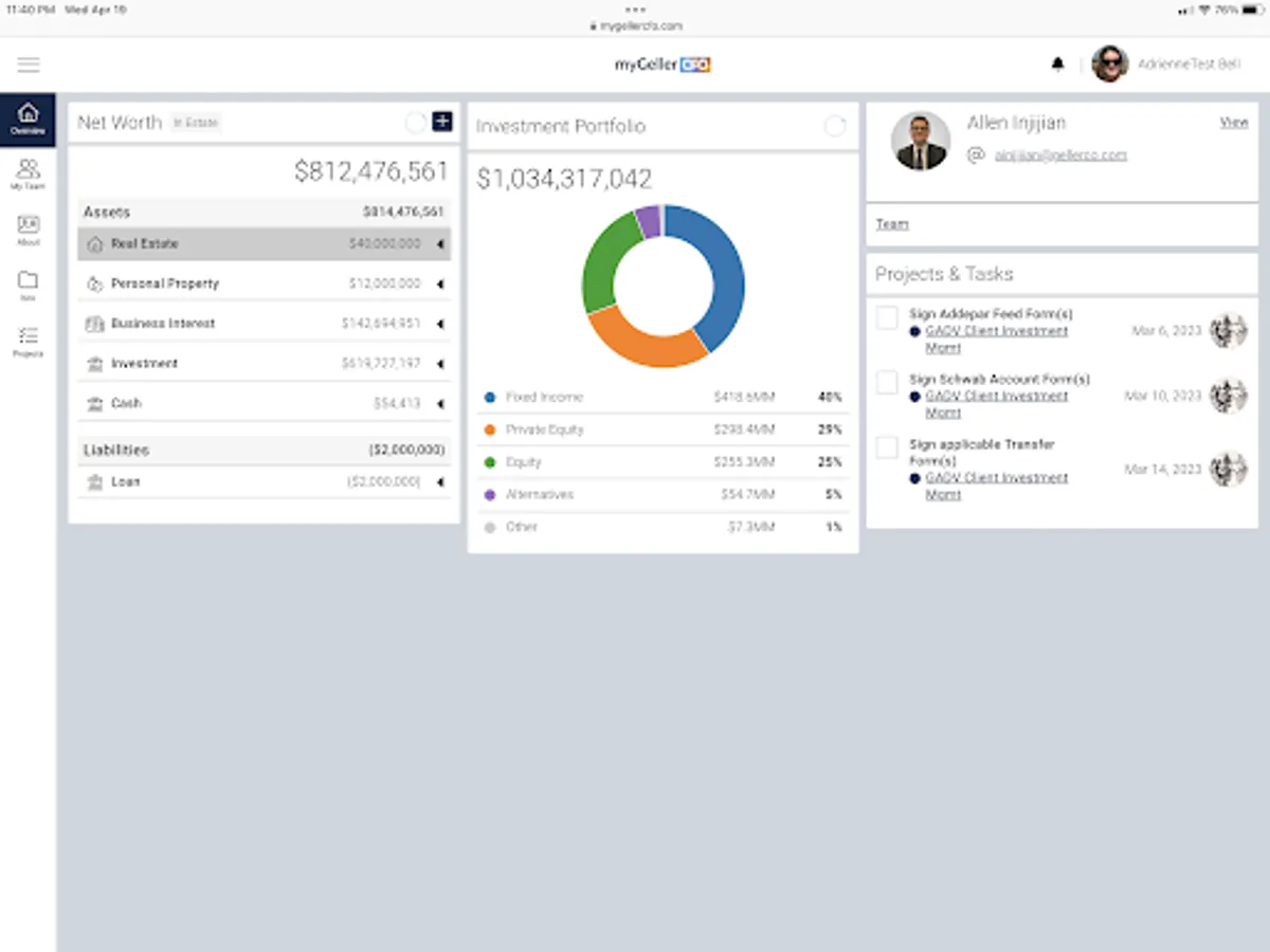 • Personal wealth information, including portfolio summaries, performance tracking and clients’ net worth