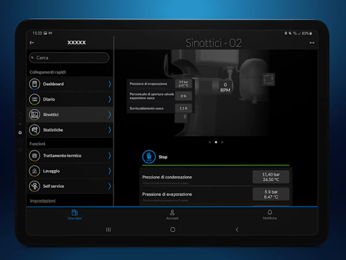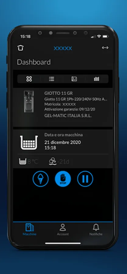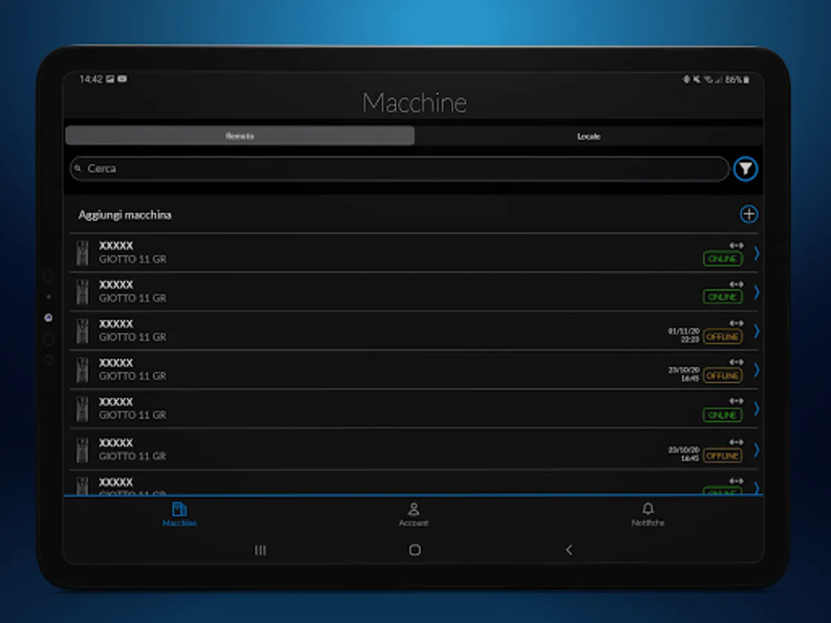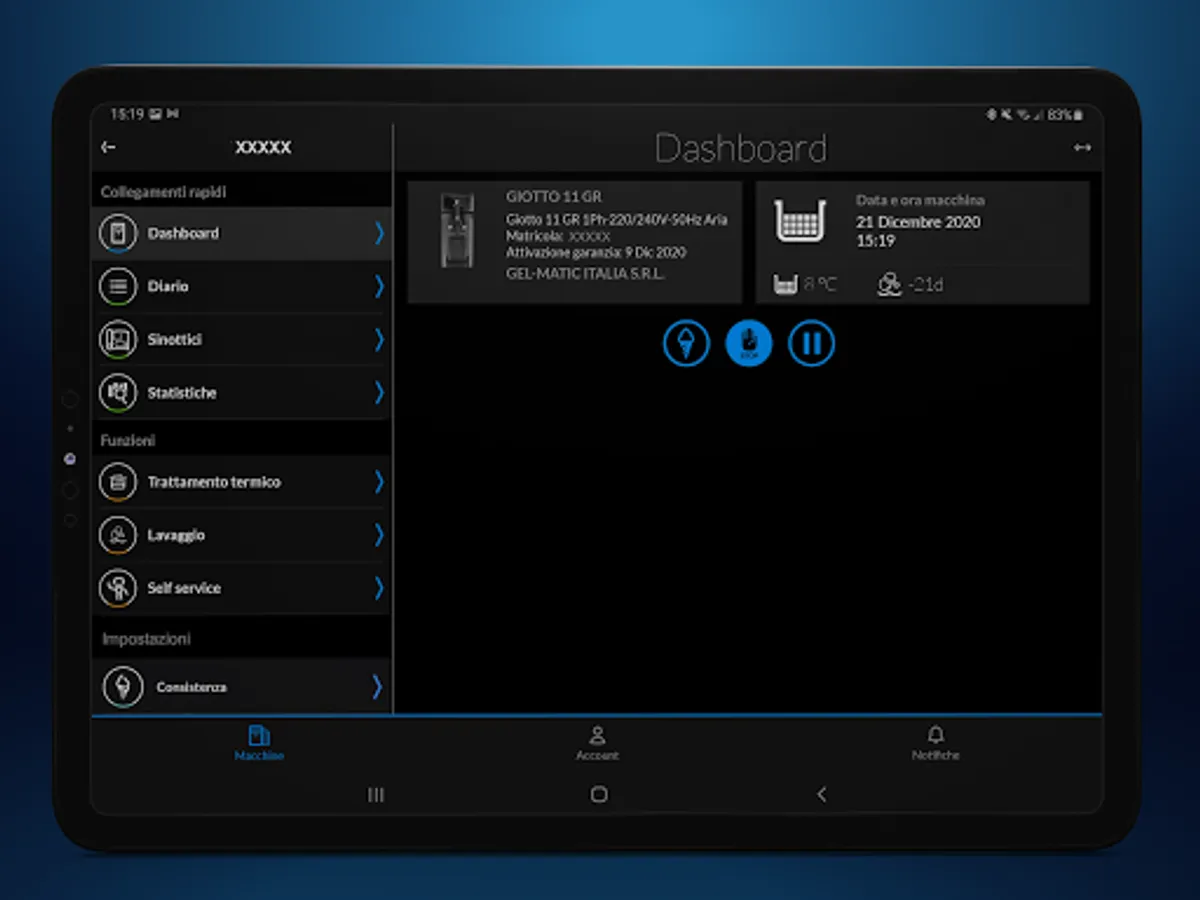 Service created by Gel Matic Italia specifically for Giotto line. Through a WiFi and/or BLE connection, it provides easy access to the machine from a remote location.