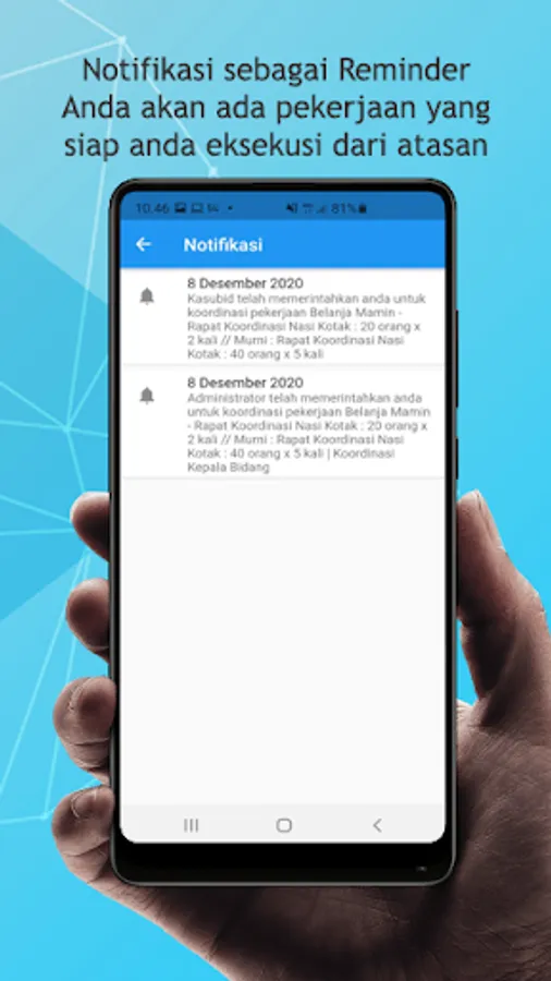 Sebuah gebrakan dan inovasi dari BAPPEDA PROV. JATIM yang membuat perencanaan pekerjaan dan realisasi pekerjaan pegawai di instansi lebih mudah diingat dengan adanya REMINDER, KALENDAR, dan REALISASI PEKERJAAN secara mobile yang berasal dari Dokumen Anggaran dan disposisi surat