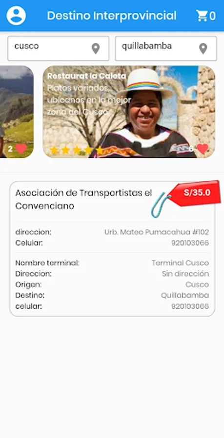 This application is aimed at people who make interprovincial trips throughout Peru, you will find information about the companies and associations that provide this service, their prices, addresses, etc. also allows seat reservation