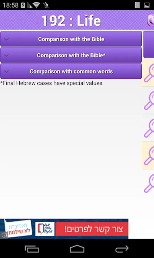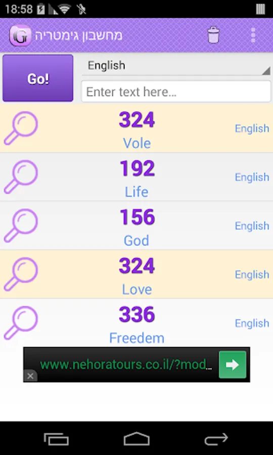 When you enter two words or phrases that have the same gematria value 'Matches detector' will tell you about that with sound and colors (Matches detector can be disabled). Also, you have a comparing system that lets you compare your input to common inputs from our database or to the Bible(in Hebrew only). It's not just calculator words you can give a number and get a list of words equal to that number.