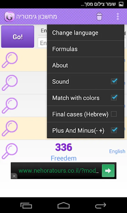 Gematria Calculator does not only have English methods but also for Hebrew Gematria methods.