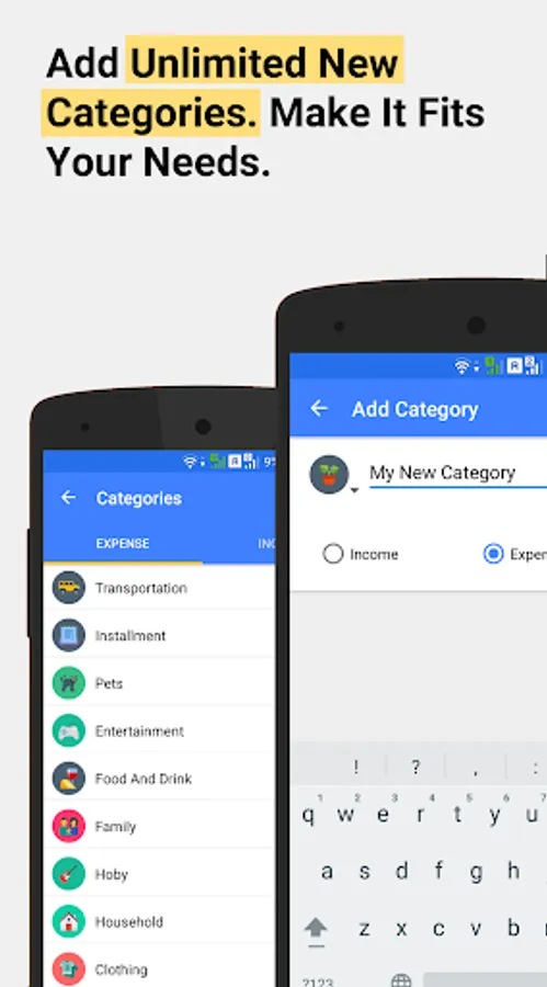 ★ Add custom expense and income categories
