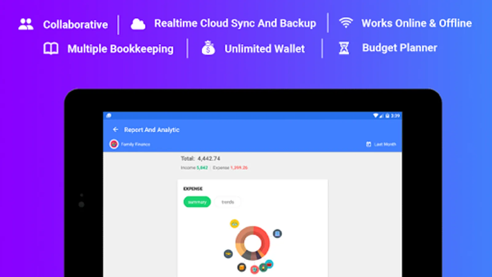 With this money management app now you can manage your personal finance by yourself or your family finance together with wife or husband and other family members. It is also a great expense tracker app for a couples & community money management or a small business cash flow management.