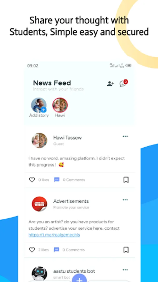 AASTU STUDENTS is an all-in-one social media app designed for Addis Ababa science and technology university students.