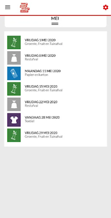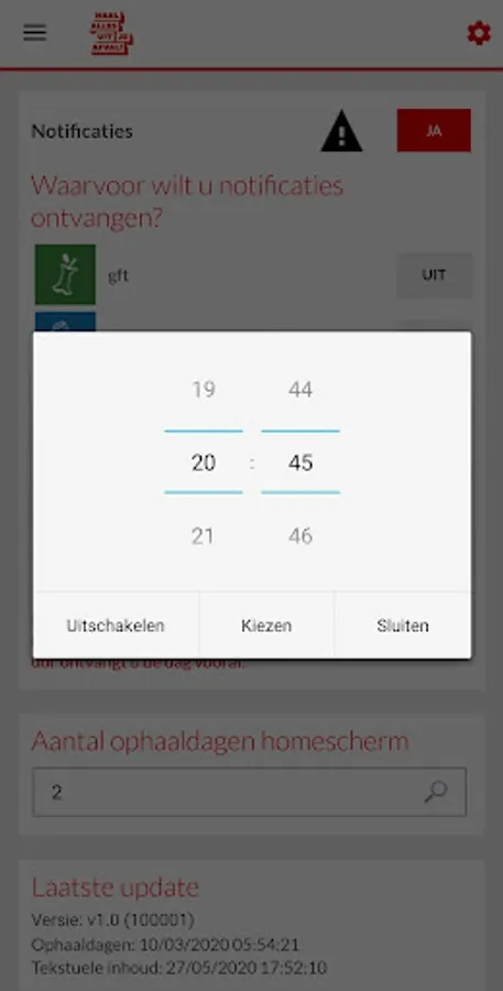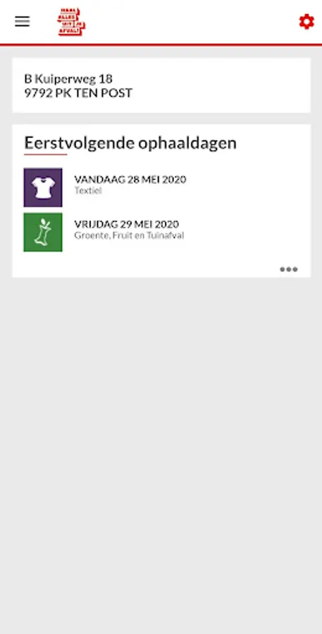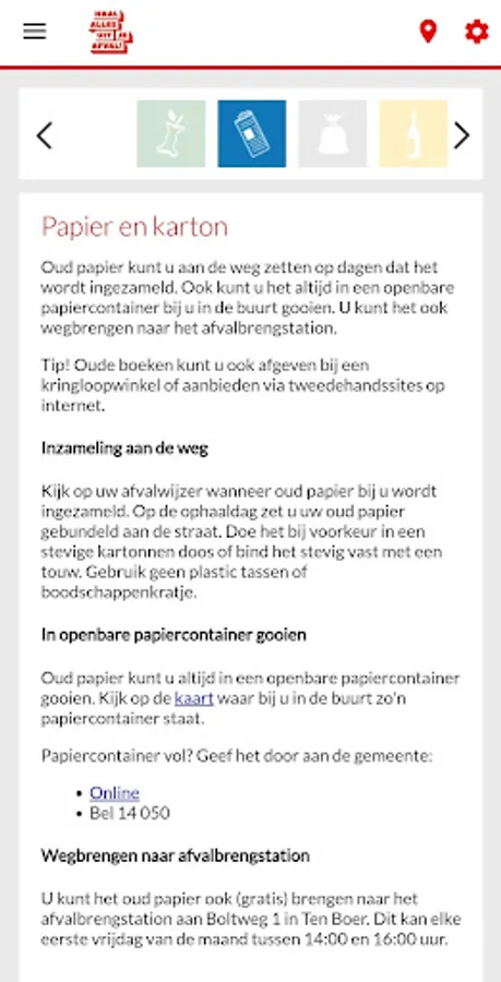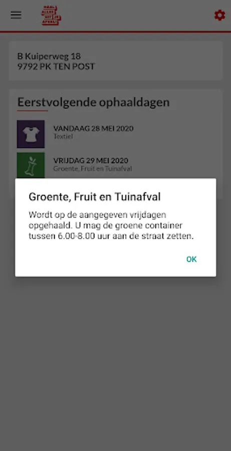 You can also set notifications. Then you will be notified when it is time to put your old paper, gray or green container or old clothes on the road.