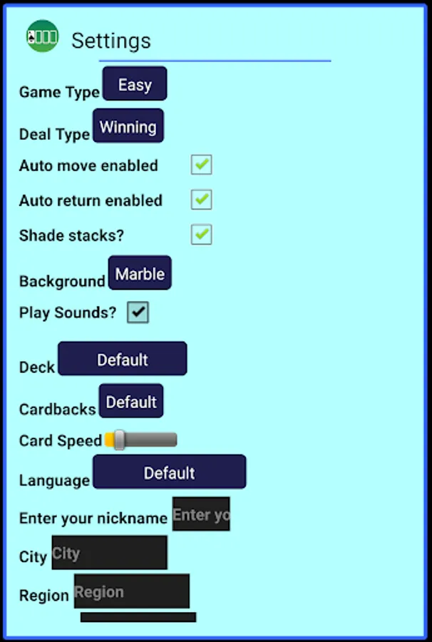 ★ Winning deals with 3 difficulty levels (Easy, Medium or Hard) or random deals
