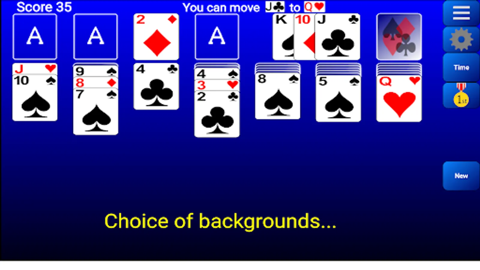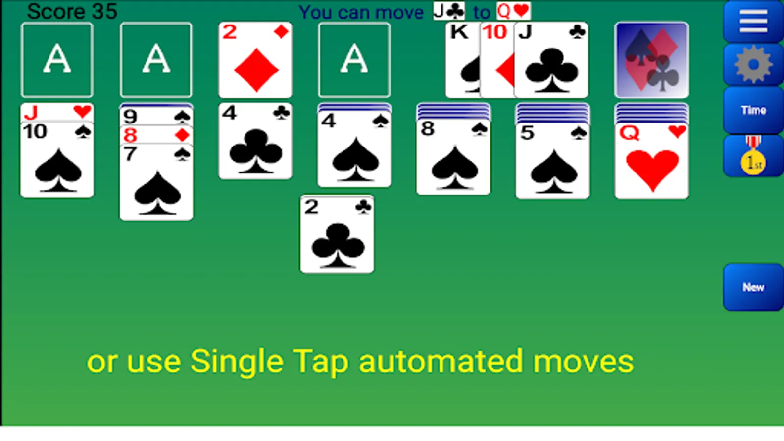 Our Solitaire has one of the best card movements on the market. You don't need to select a specific card in a pile unlike many other Solitaire games. You can move cards with a single tap.