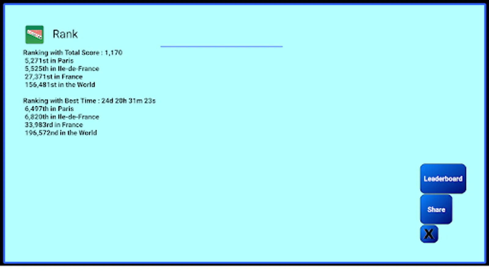 ★ Online rank & leaderboard in world, country, state and city