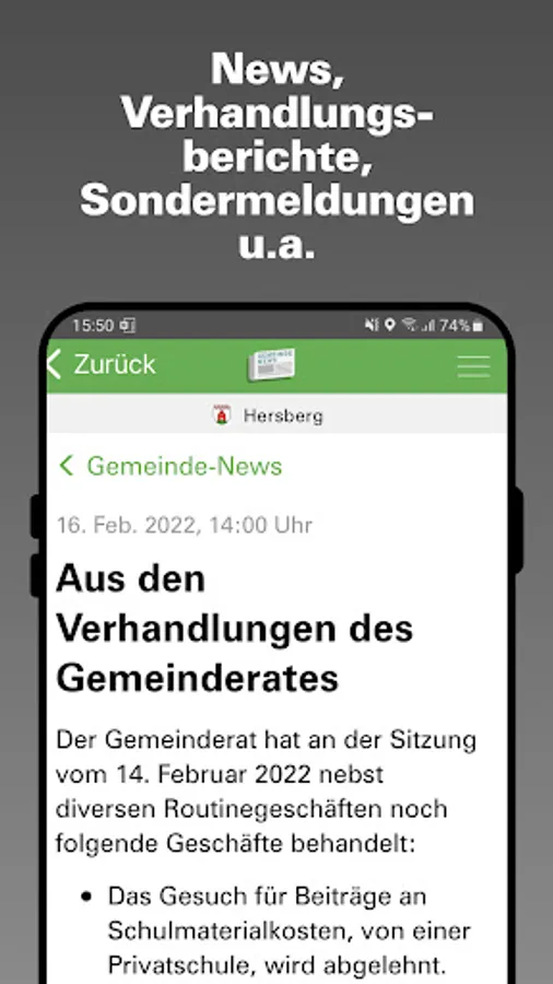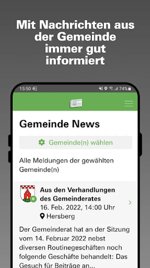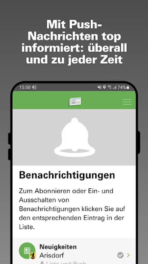 Municipalities can use the receiver quickly and easily via push messages (format: text, image and PDF) inform. The news is terminable and are automatically sent by the Web service.