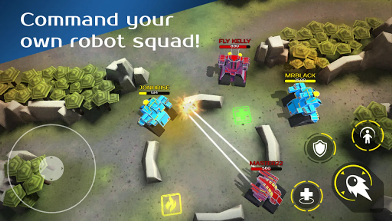 The robot war has started! Choose your side and fight with enemy robots without mercy! Feel like a real robot commander, step to the battle arena with our new team shooter game!