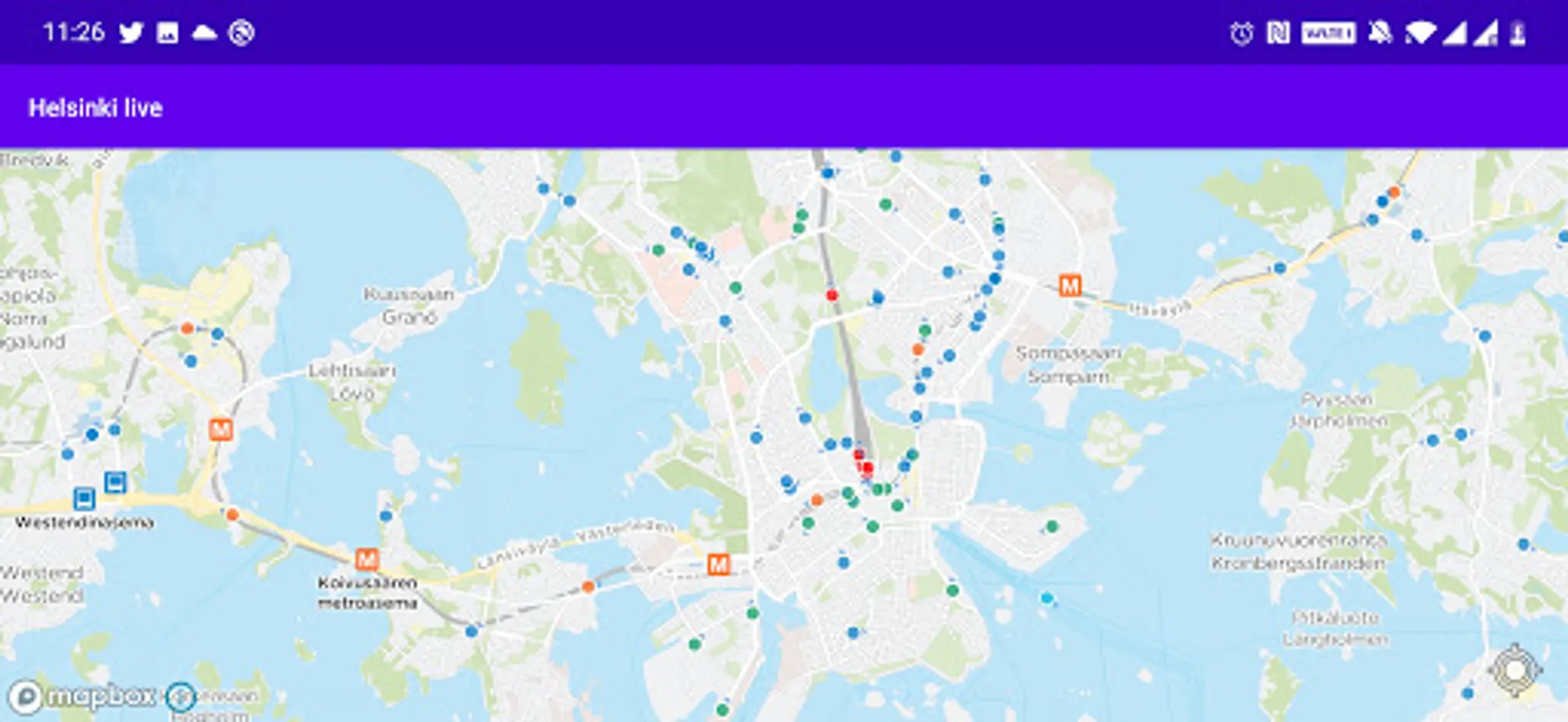 A real time map of public transport vehicles in Helsinki area, data comes from HSL(https://www.hsl.fi/en/hsl).