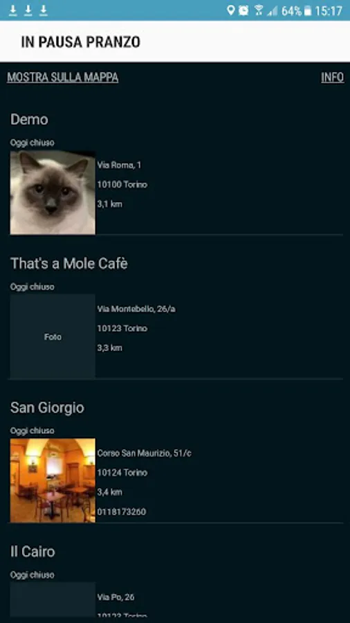 The map shows you nearby places and you can immediately discover the lunch menu, the standard one, the photos of the restaurant, and much more.