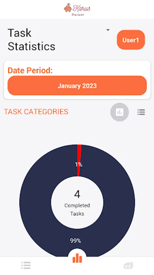 The parent / guardian approves the completed tasks to grant the points which are directly linked to the children’s goals or can be taken as pocket money.