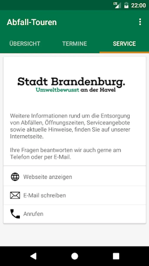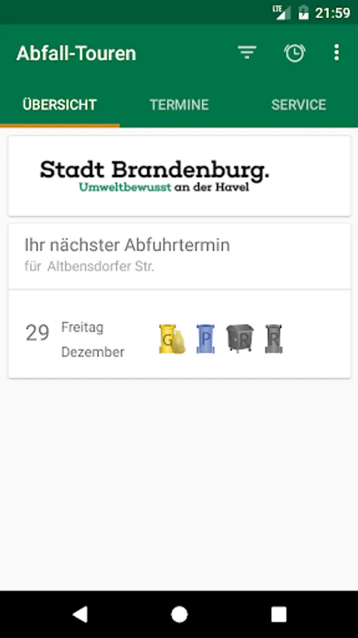 The free TRASH TOUR App of the Section for environmental protection and conservation of the city of Brandenburg provides information on the current discharge dates of the available in the city waste collection systems.