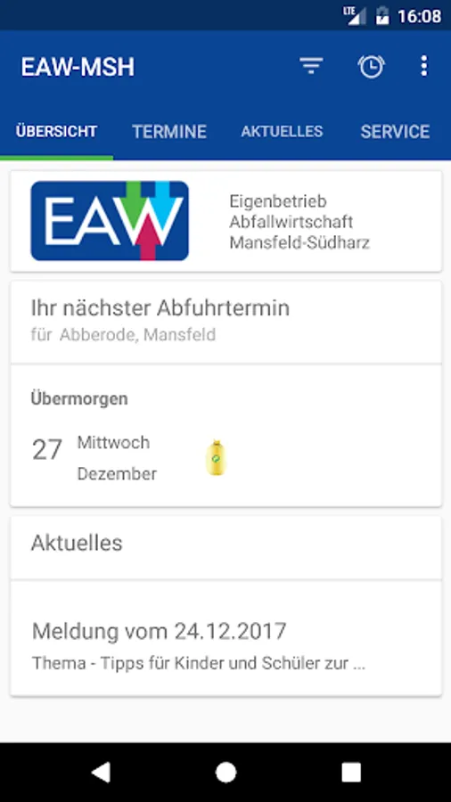 The removal of all appointments carried over the Mansfeld-Südharz collection systems and the latest news from the website of its own waste management operation Mansfeld-Südharz (EAW MSH) provides the free app.