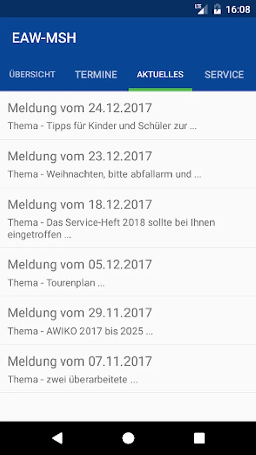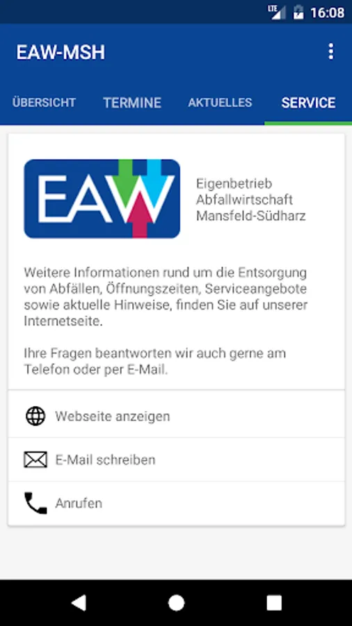 The EAW MSH app also offers updates from the website of its own operations as well as direct access to the contact persons, the registration form and the collection points.