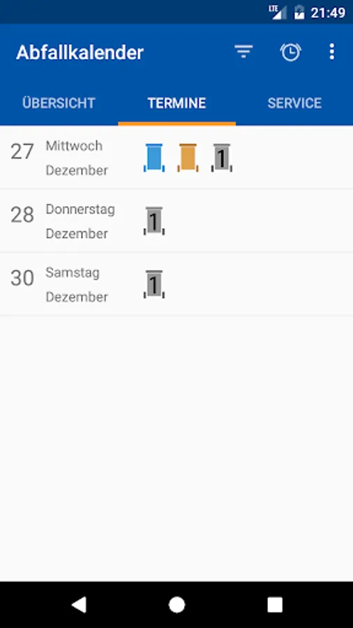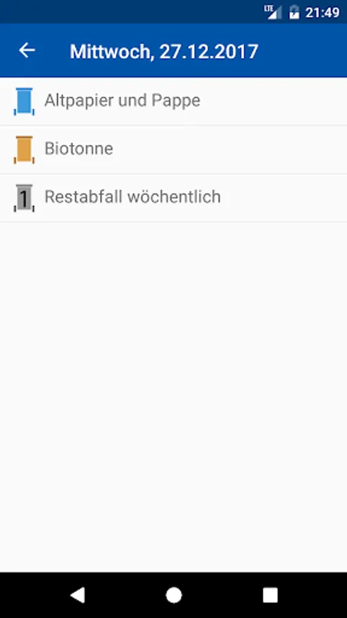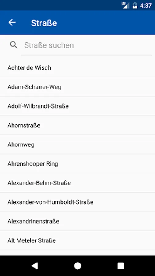 After installing the waste calendar app Please select your street and house number. You will then always directly after calling the drop calendar app all dates for this address.