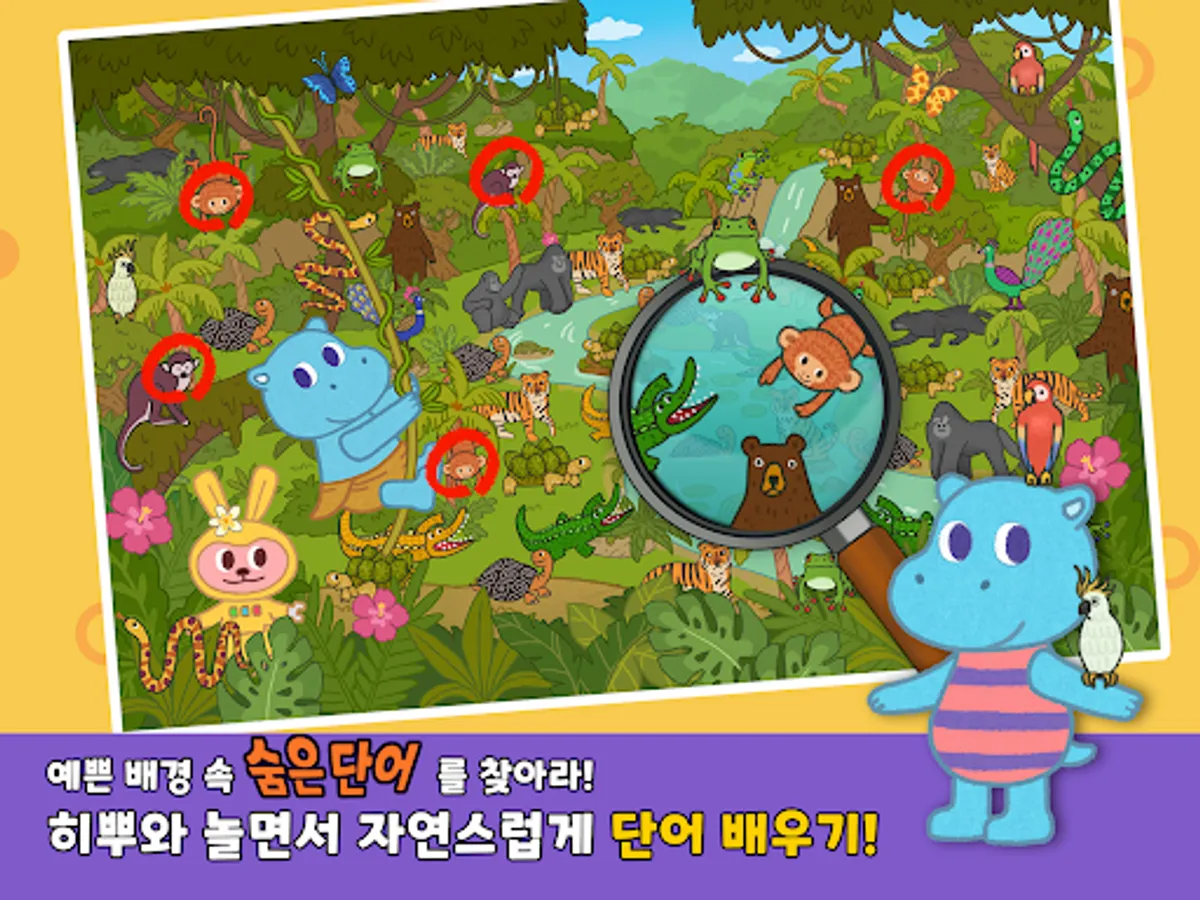 Learn words with curious hippo and artificial intelligence robot Robora Pang.