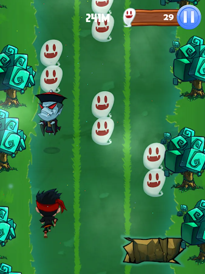 Beset by foul apparitions hungering for blood, the jungle comes alive hellbent on preventing our hero from passing through unharmed! It's up to YOU to sure he survives the night by swiping the screen to avoid obstacles and tapping foes to vanquish them, racking up precious points as you race along! Ah but not so fast! Malicious mini bosses pop out to challenge you once you reach their locations and it's up to you to play their games, and make it through harder, better, faster, and stronger! Defeat these diabolical fiends and earn bonus points to boost your hopes of emerging alive!