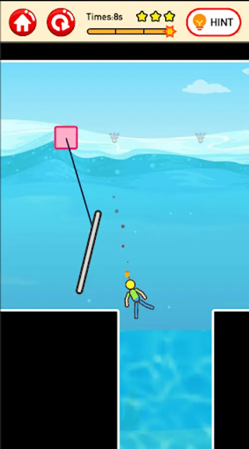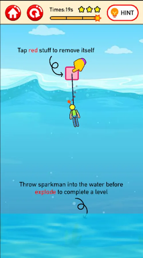 It is both a puzzle and a fun game. An effective game to practice thinking to develop intelligence. There is an explosive at the head of your character, you must solve the puzzle before the rope of this explosive ends, break the connected blocks and drop the character into the water.