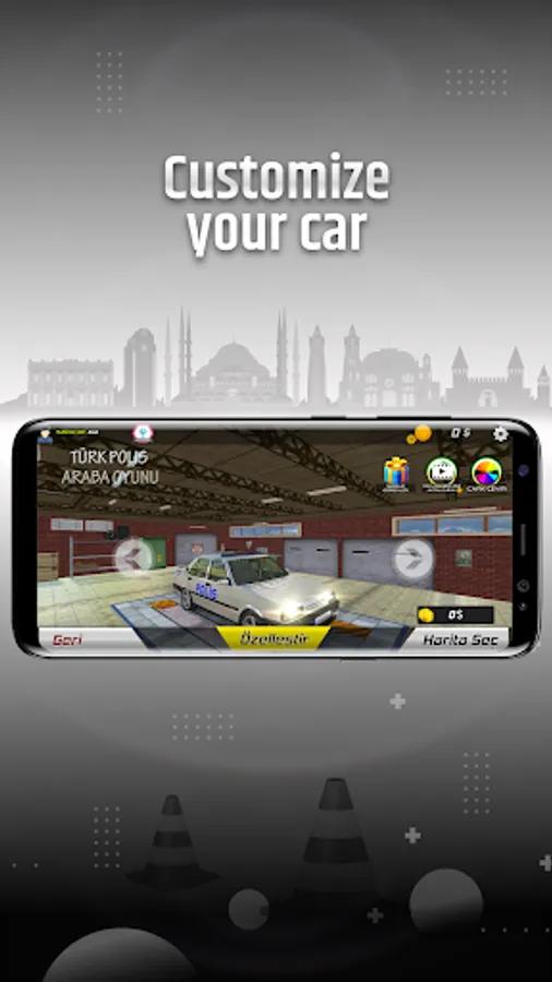 You can modify your police cars in your garage. You can apply many customizations to your vehicle such as color, Jang, License Plate, Exhaust, Sticker and Air Suspension.
