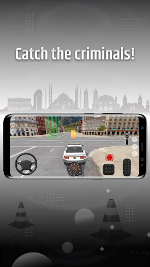 • Different police car driving modes! ( Drift, Free ride, Crushing, Checkpoint, Parking )