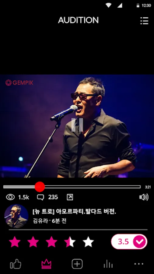 By swiping the star at the bottom of the screen, you can score points from 0.5 to 5.0.