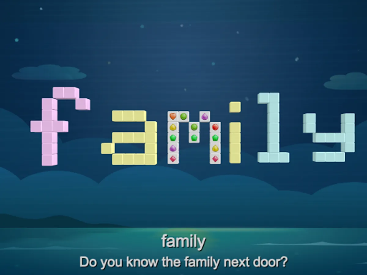 The vocabulary is built by multiple cubes, you need to remove everything from the board. After that It will has a quiz.