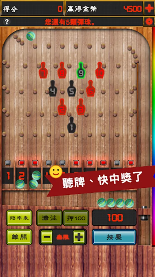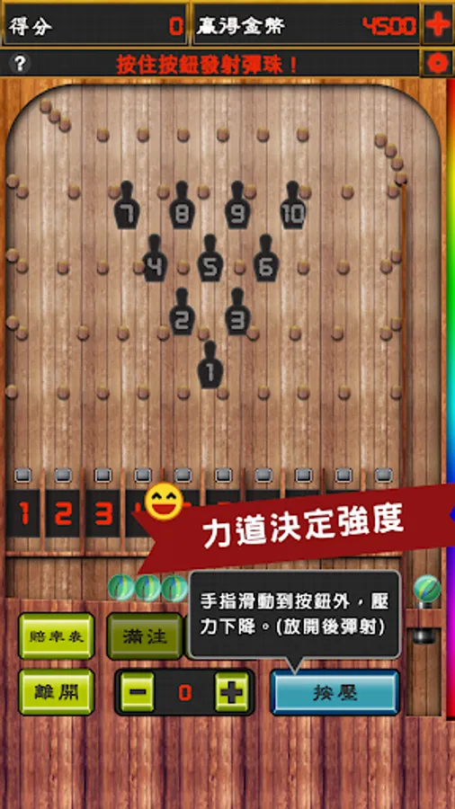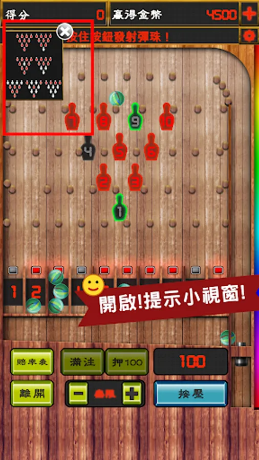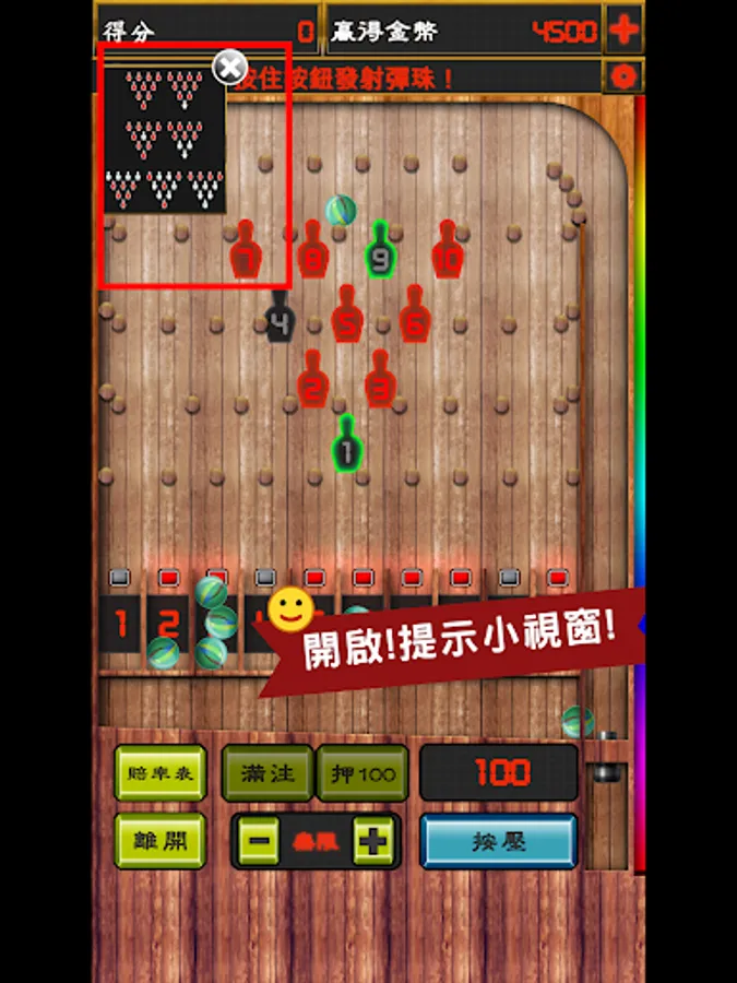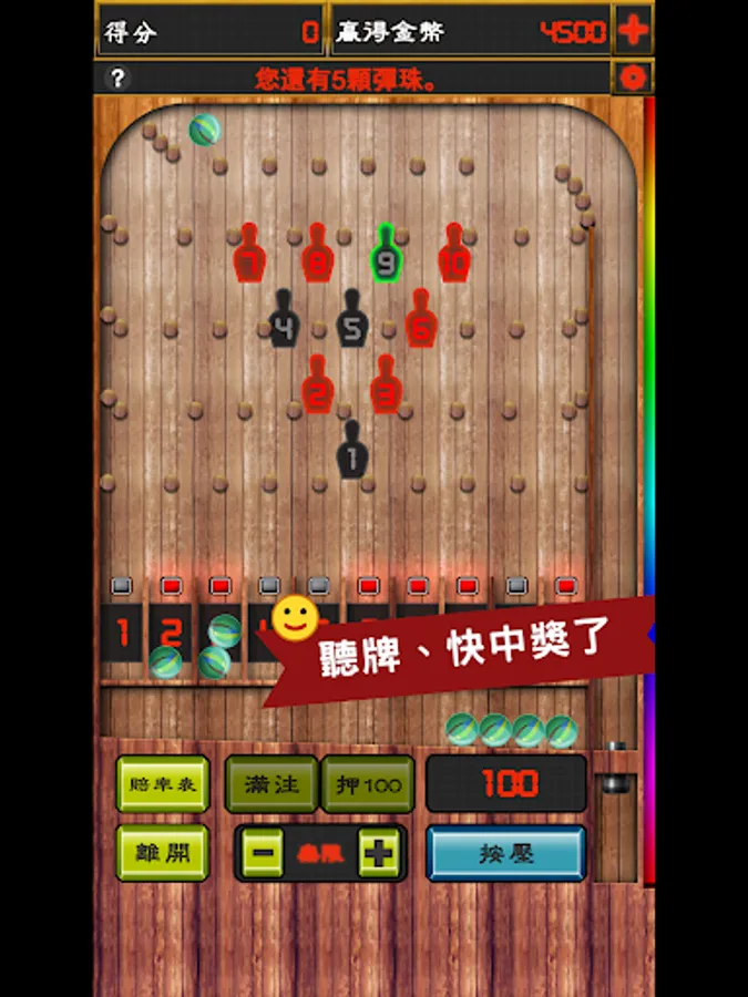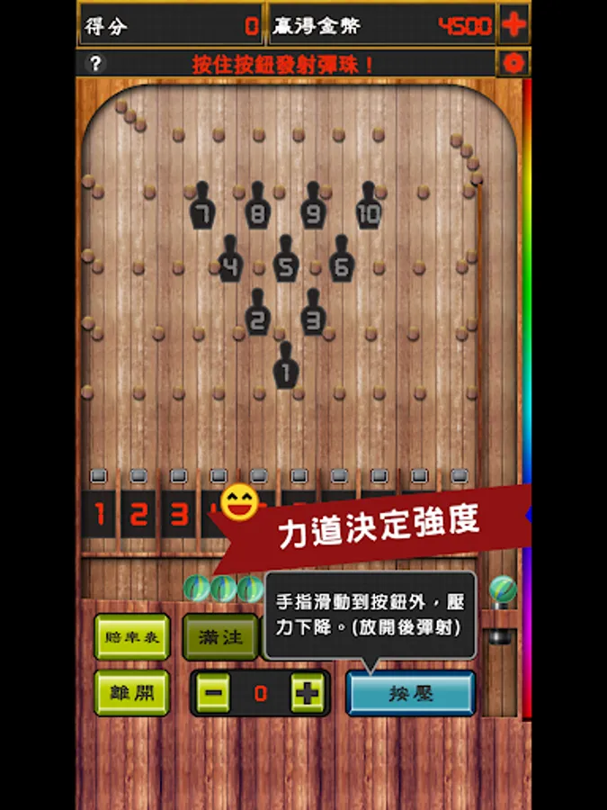 保齡球彈珠台的新奇玩法,利用技巧讓彈珠打入你所想像的洞,將會依照該局的倍率給予對應獎勵!簡單又輕鬆的夜市機台遊戲,是不是又再度挑起您的興趣了!不需網路,打開即玩,隨時可以用手機玩上一兩局,消磨時間的好夥伴。