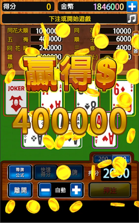 - 遊戲不提供「現金交易賭博」,也沒有機會贏得現金或實體獎品。