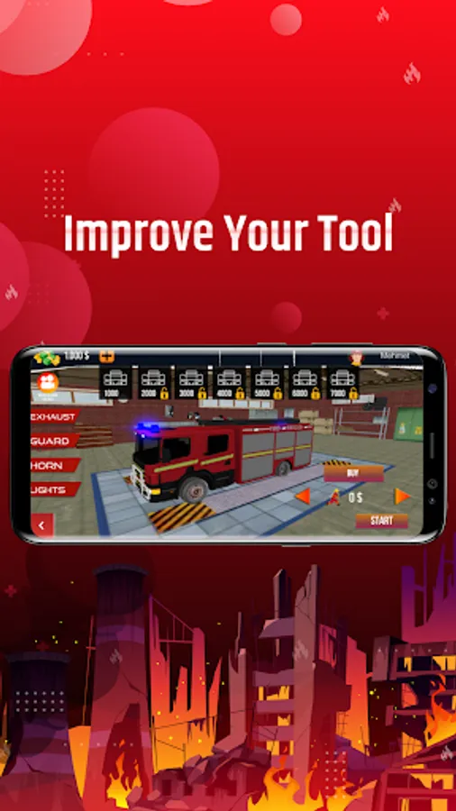 • Different fire engine driving modes! ( Drift, Free Ride, Crushing, Checkpoint, Parking )
