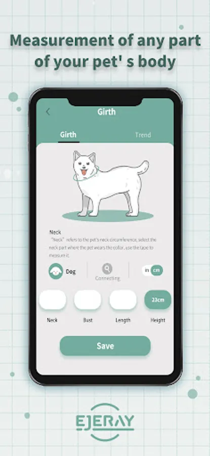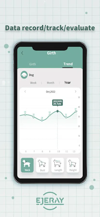 By recording the pet's weight, body circumference, and the BCS assessment, you can track the changes of your pet's body shape in an all-round way. With the Bluetooth connection, the measurement data will be synchronized transmitted to your phone, and you can view the pet's shape change trends on the APP.