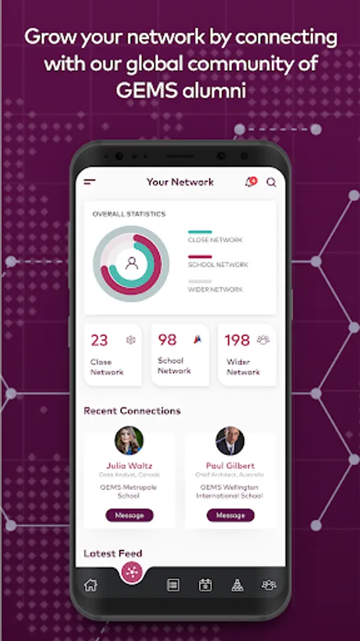 GEMS Alumni app allows you to connect and be part of a global network of GEMS students under a single umbrella. Alumni members will be able to access their network and stay up to date with news, achievements, events, internship / jobs opportunities, share memories and a lot more. Designed to bring together all the GEMS students, the app offers a host of services and support to maintain a lifelong relationship with alma mater.