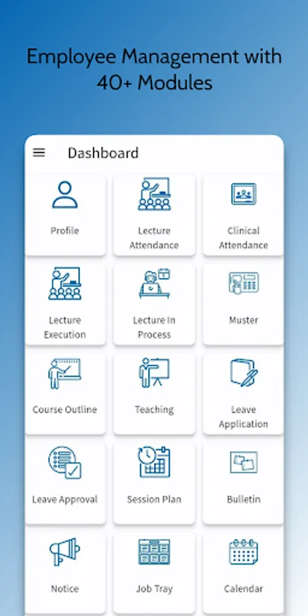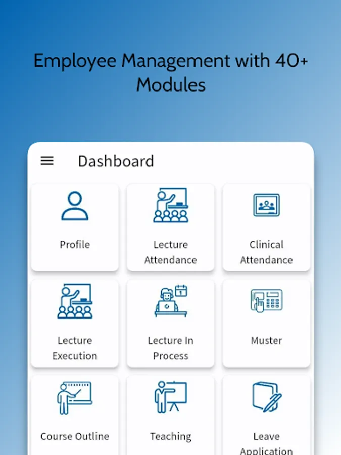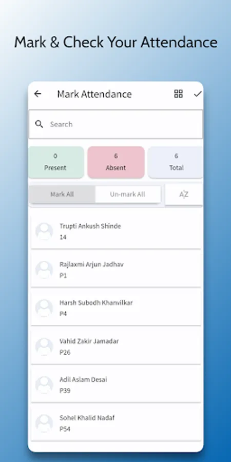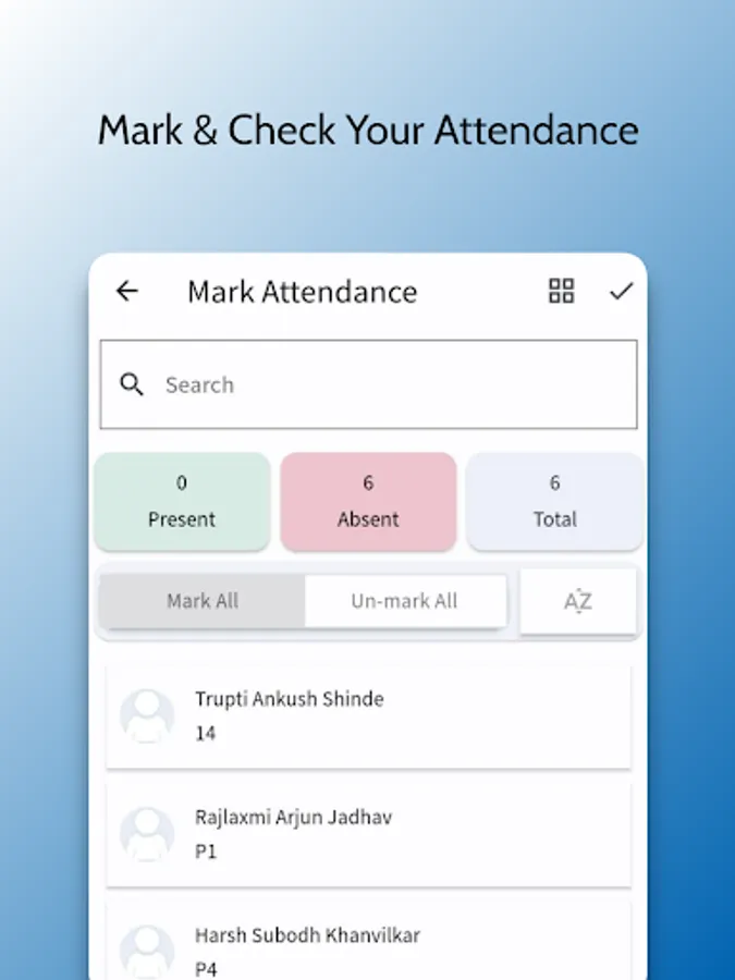 -Enables faculty members to mark student's attendance at ease with a level of convenience offered through multiple views(List and Grid View).