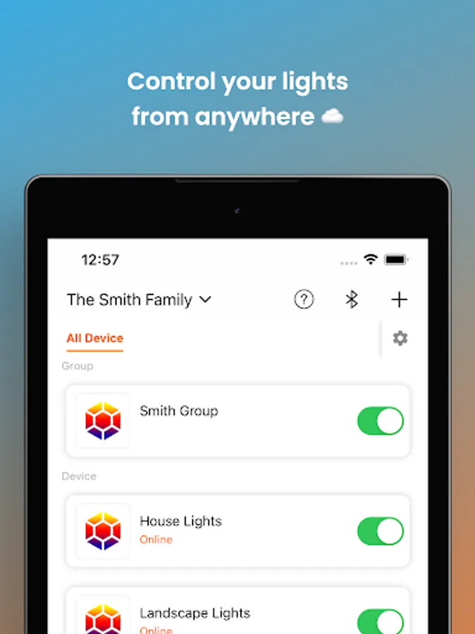 Cloud-based secure sign in. Control your lights from anywhere there is a network or cellular connection.
