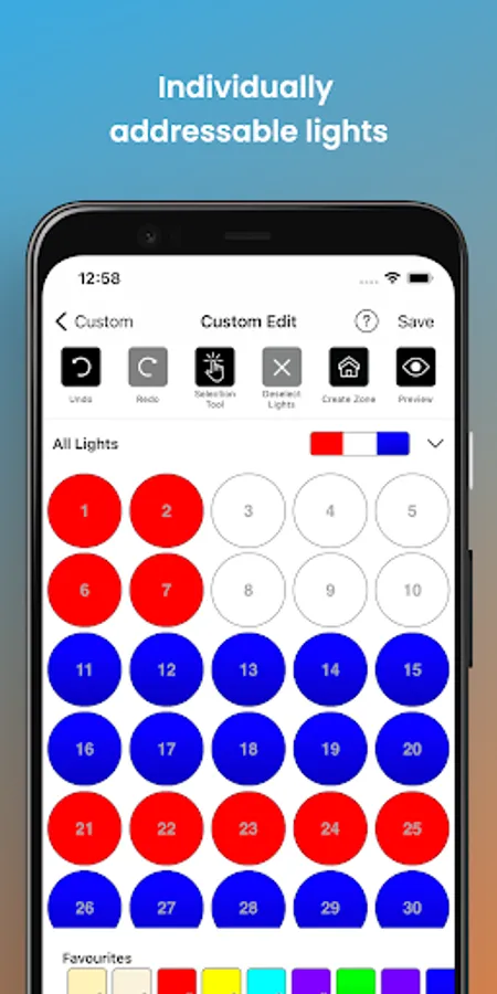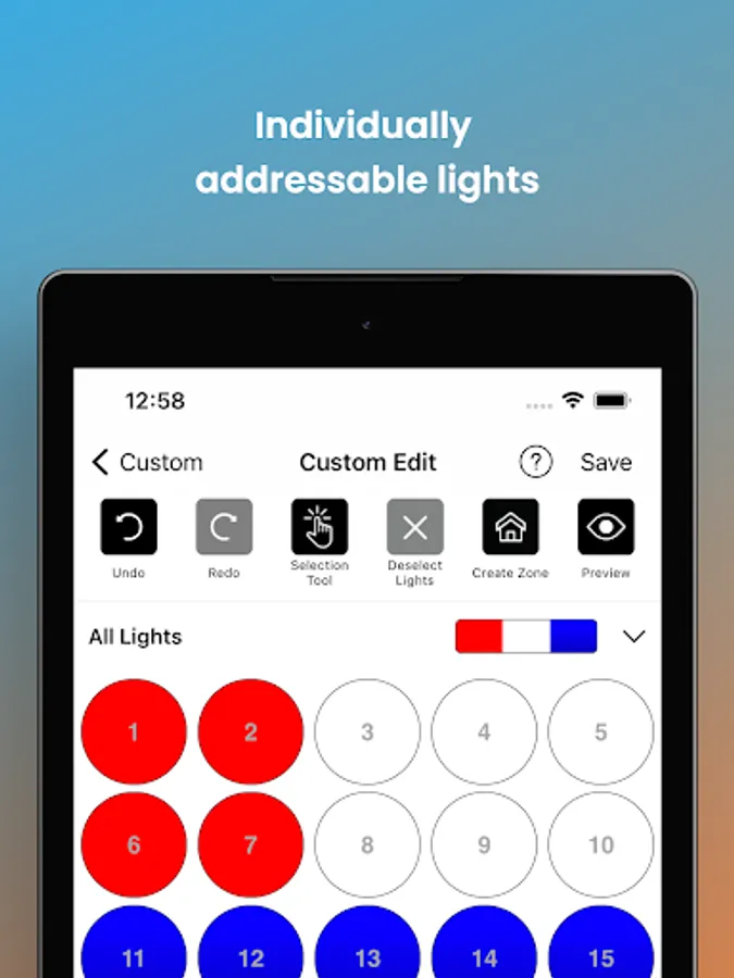With our preset animations, you can create flowing patterns, fades, jumps, shifts and other fun or elegant movements.