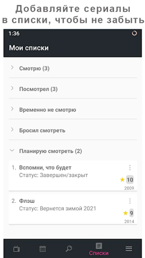 • Creating your own lists ("watch later", "quit watching", "I stopped watching" and so on.)