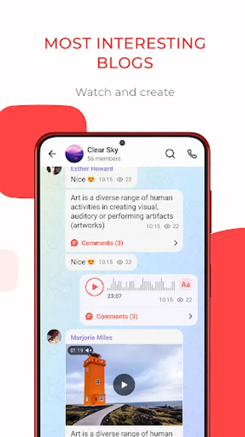 We have a convenient built-in editor mode which allows to generate any post - text, with video or cool pictures. We monitor all new bloggers and promote the most interesting channels through the built-in catalogue. You can also host live broadcasts, receive donations from subscribers and communicate directly with them.