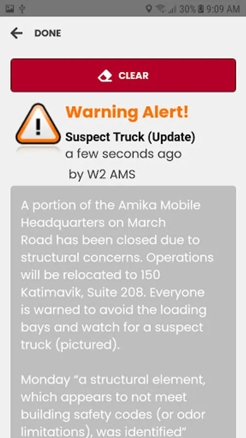 The Alert functionality provides rapid reception of multimedia emergency communications from the organization(s) security team(s), based on your location (subject to your approval to share location) and/or group membership. Upon receiving an alert, the app will attempt to vibrate your device and pop-up a full-screen view of the alert content. It can also optionally play an audible alert tone and read the message, subject to settings that you control. The organization may include a list of responses in the alert that you can activate to acknowledge reception.
